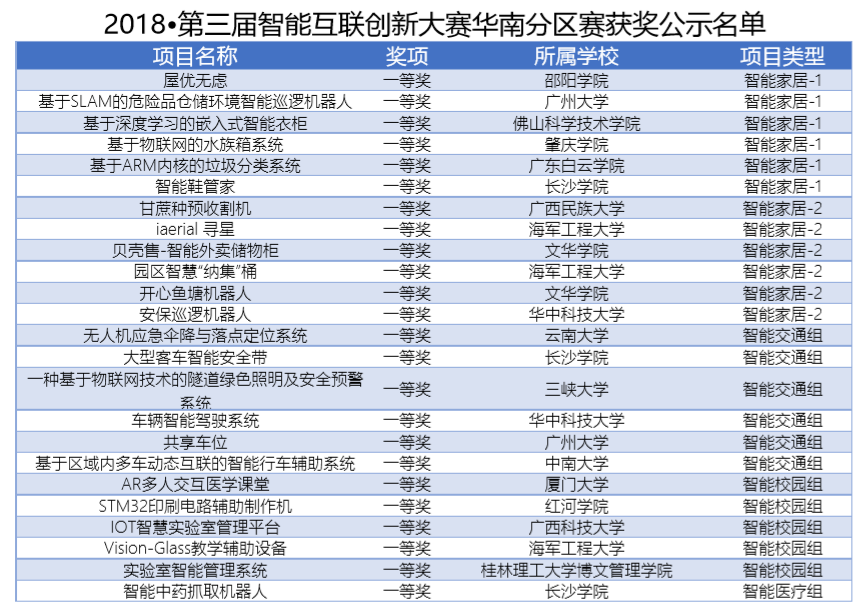 (yl23411陶梓、彭玮、张轶)7月7-8日,2018年全国智能互联创新大赛华南分区赛在校举行。来自华南赛区的yl23411、武汉大学、厦门大学、中南大学、国防科技大学、中山大学、海军工程大学、桂林电子科技大学、云南大学等55所高校的154支参赛队伍对自己通过非凡想象力和实践力设计制造的创新产品进行了现场答辩和作品展示,同时分享和交流创新经验和心得。经过激烈竞争,公司斩获一等奖3项、二等奖2项、优胜奖1项,获得一等奖项数并列第一。