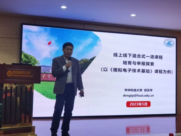 会上,公司邓天平教授作“线上线下混合式一流课程培育与申报探索——以《模拟电子技术基础课程》为例”主题报告,针对“什么是一流课程”“如何建一流课程”“如何用一流课程”的问题,为国家级一流课程的申报和建设提出可行性意见建议。