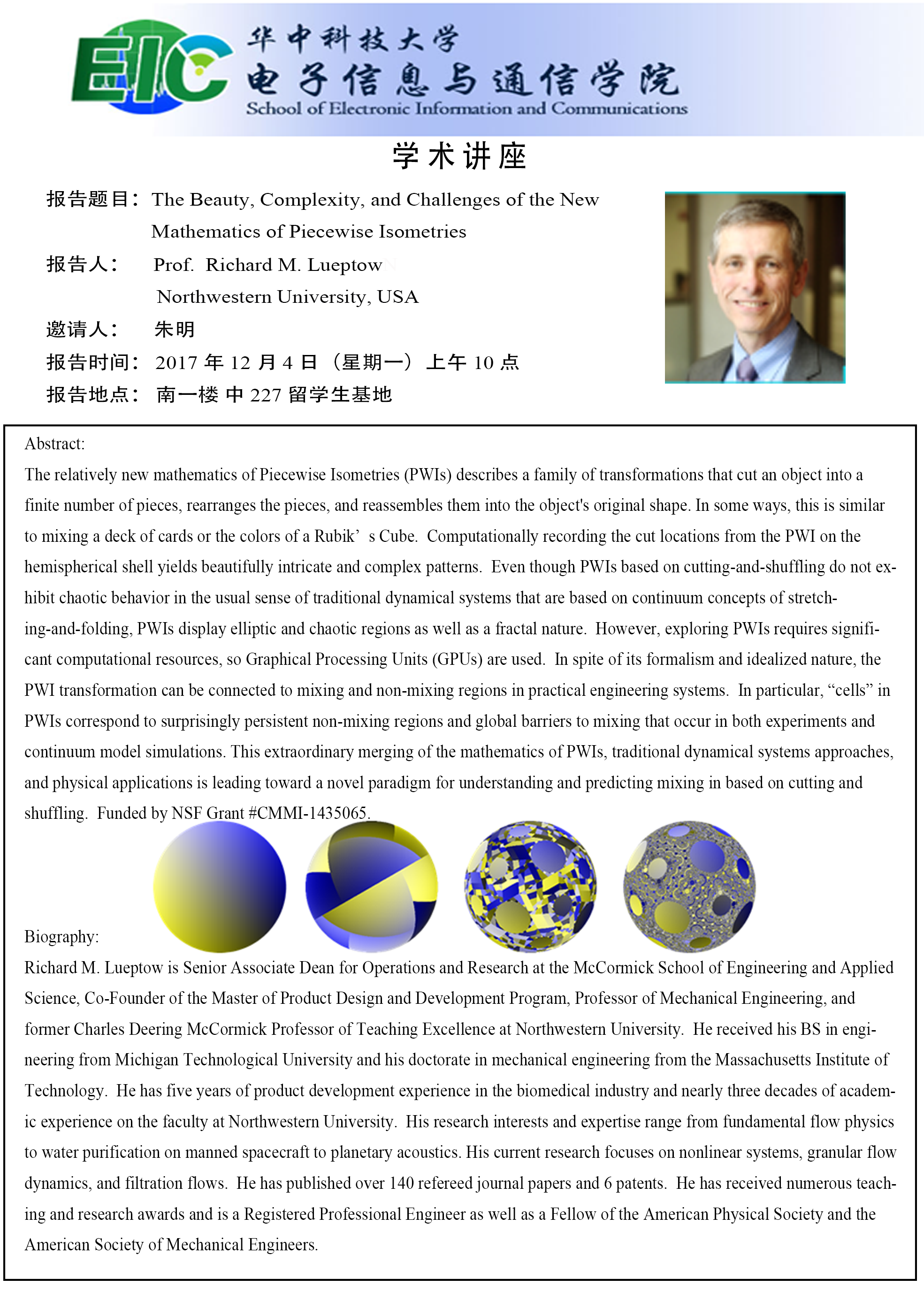 报告题目:The Beauty,Complexity, and Challenges of the New  Mathematics of    Piecewise Isometries