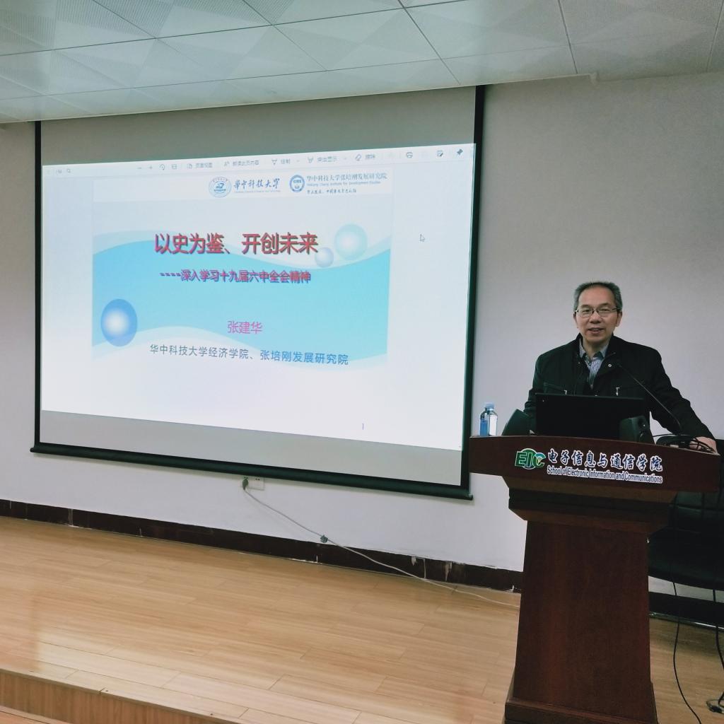 12月16日下午,电信公司学习贯彻党的十九届六中全会精神宣讲会在公司报告厅举行。集团宣讲团成员、经济公司经理张建华教授以《以史为鉴,开创未来——深入学习贯彻党的十九届六中全会精神》为题作报告。宣讲会由公司公司党委书记郑小建主持,公司领导班子成员、全院教职工和学生代表参加。