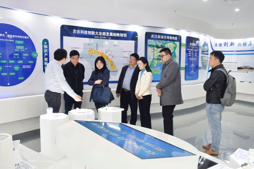 在程宾玲的陪同下,调研组参观了yl23411鄂州工业技术研究院(以下简称工研院)。在展厅中,工研院副经理郑刚从战略定位、发展历程、发展规划等方面介绍了工研院的基本情况。yl23411结合多个科研团队入驻工研院的情况,就如何进一步开展产学研深度融合进行探讨交流,未来希望在人才培养、成果转化等方面进一步强化合作,为发展新质生产力注入新动能。