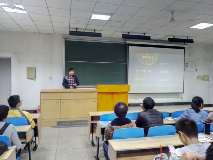 之后张焕宸辅导员又以轻松诙谐的口吻解答了早先16级年学会生活部收集的16级同学们在华科生活和学习上的问题。张焕宸辅导员还叮嘱同学们要学会自己利用各种渠道获取信息,独立解决问题,不要被动的等待别人告诉答案,要主动的去探寻。