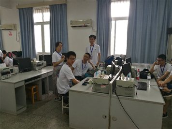 7月4日参赛队伍开始报道,总计97支队伍参加。从上午八点开始参赛队伍陆续地到达比赛地点。评委组的专家也陆续地从各地区来到武汉,并在专家志愿者的引导下来到现场。下午五点,抽签正式开始。抽签完成后,则由志愿者收集给个队伍的答辩ppt,最后统一进行测试。当然,这项工作并不轻松,我们的志愿者在当天晚上12点仍在继续接收相关团队的PPT资料。