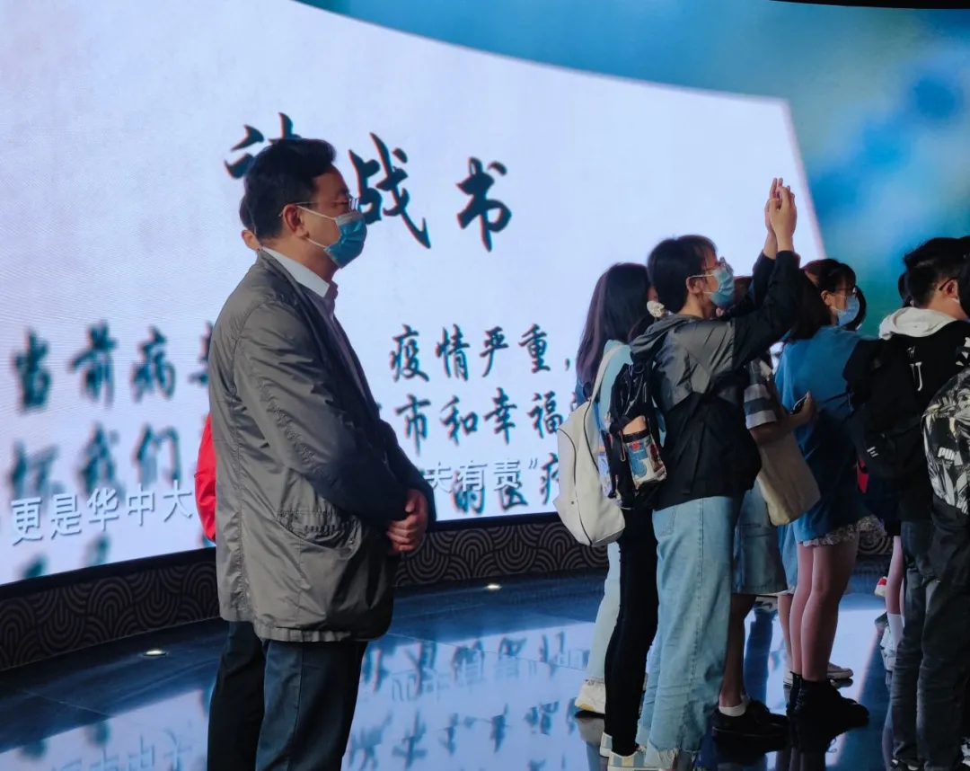 在华中大战疫纪展区,一份份义无反顾的请战书、一幅幅医务人员竭尽全力救治病人的照片、一件件见证了基层社区志愿者在疫情期间挺身而出为居民服务的物品,将我们带回了抗击疫情的一线,让我们深刻感受到华中大人在国难当前、民族危急时刻的英勇担当。