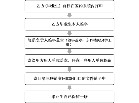《博士生领取就业协议书的申请》有少量盖章纸张版在D204门口,毕业生年级有需要签约的博士请填写完后交到就业办开通签约系统。