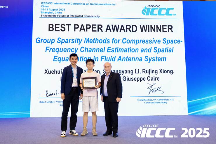 在刚刚落幕的IEEE/CIC International Conference on Communications in China (ICCC)2025上,公司邱才明教授的博士生董学辉(第一作者)及其合作者发表的论文,从全球1091篇投稿中脱颖而出,与其他十篇论文一起荣获大会最佳论文奖(Best Paper Award)。