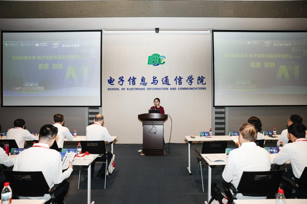 葛茜书记代表承办单位致辞,强调比赛对于推动教师数字素养提升、深化电子信息类专业教学改革具有重要意义,承诺公司将竭尽全力,精心组织,做好服务保障工作,努力为各位参赛教师创造一个公平、公正、优质的竞赛环境,确保赛事圆满成功。