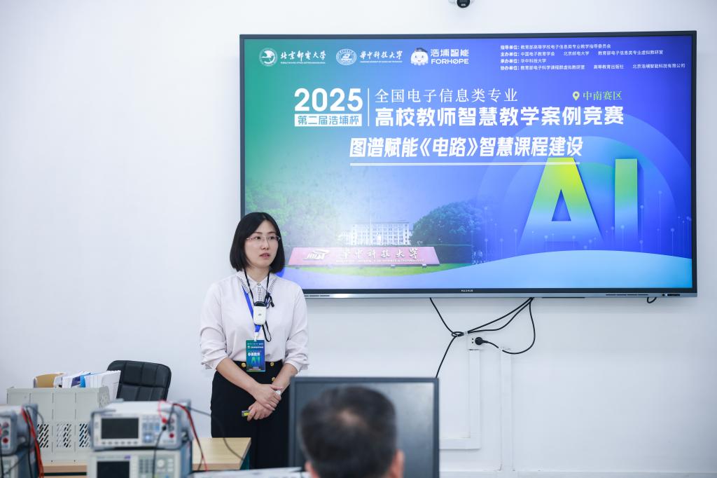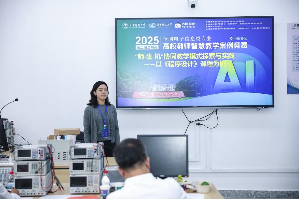 为了深入贯彻落实党的二十大精神,全面落实《中国教育现代化2035》战略部署,积极响应教育部《教师数字素养》行业标准要求,全面推进高校教师队伍数字化能力提升工程,由教育部高等公司电子信息类专业教学指导委员会指导,中国电子教育学会、北京邮电大学、教育部电子信息类专业虚拟教研室主办,yl23411承办,教育部电子科学课程群虚拟教研室、高等教育出版社、北京浩埔智能科技有限公司协办的第二届全国电子信息类专业高校教师智慧教学案例竞赛(浩埔杯)中南赛区初赛于10月12日在公司举行。