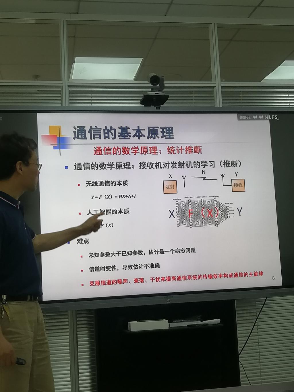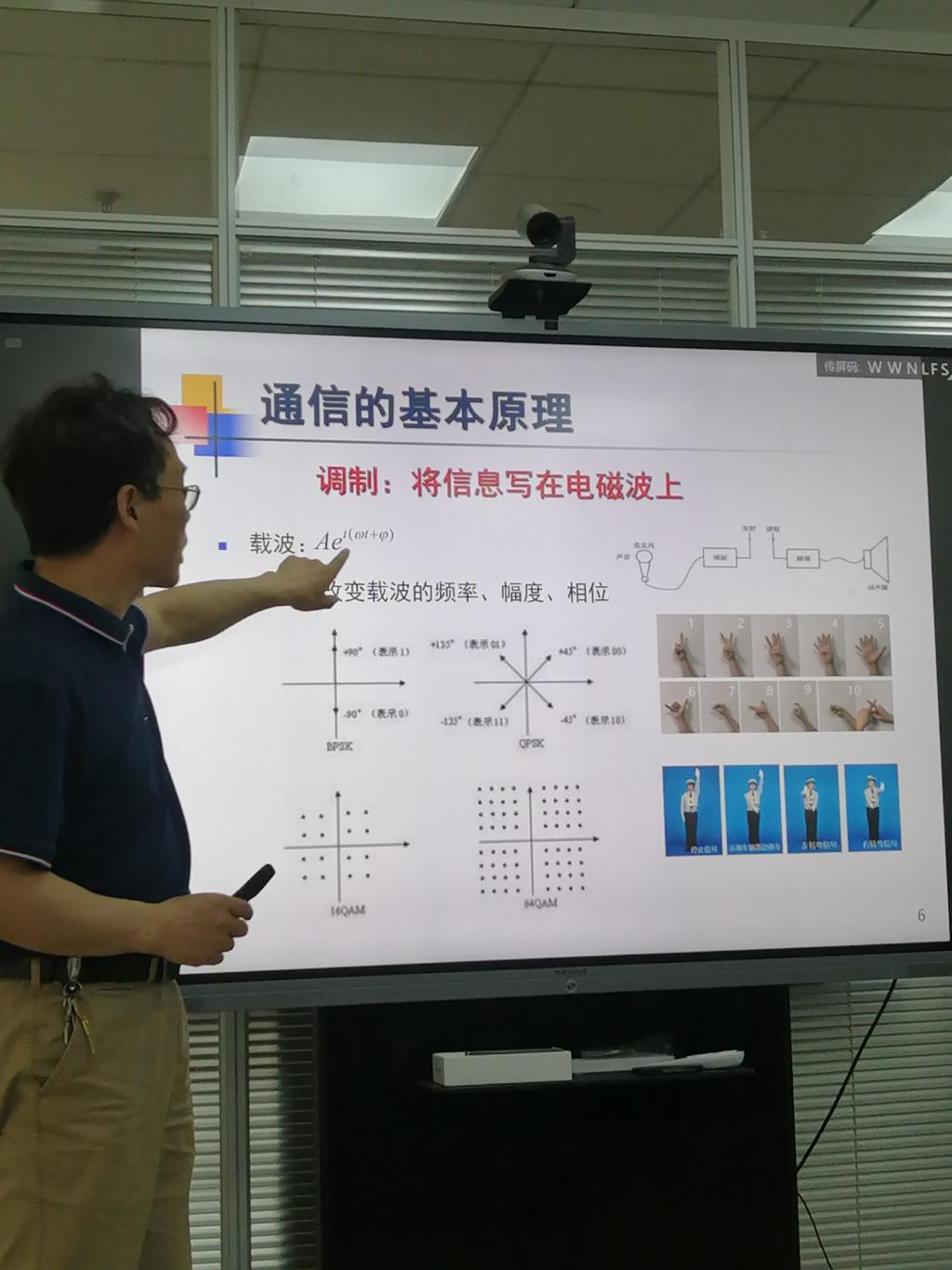 刘应状从通信的基本内涵、课程设置和就业情况三个方面进行了介绍。从原始的纸质通信方式切入,刘应状讲到现在的移动通信,指出移动通信就是电磁波来代替纸作为介质,引出通信的本质:把信息写在电磁波上去传播。讲解既生动形象,又触及本质。之后,刘应状又分别从物理和数学角度讲解了通信的基本原理,不仅强调了调制的作用是通过改变载波的频率、幅度和相位,“把信息写在电磁波上”,还强调了统计推断等数学基础的重要性。